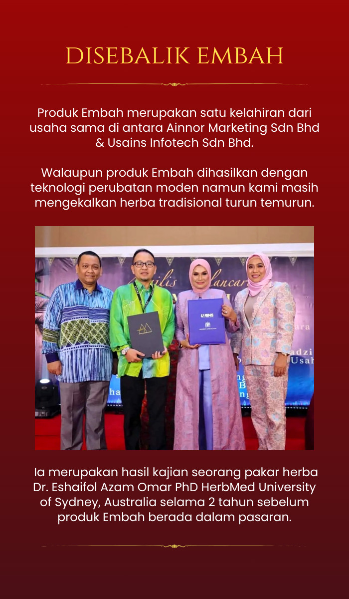 Teh Botani oleh Embah merupakan teh herba yang dirumus khas secara warisan tradisional dan semulajadi serta menggabungkan teknologi moden.