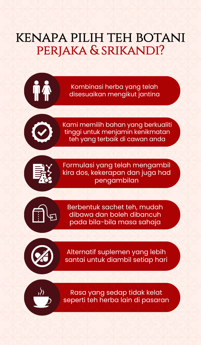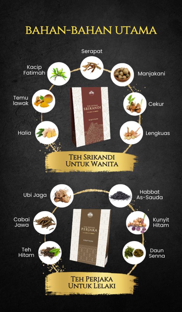 ✅ Formulasi khas lelaki (Perjaka) & wanita (Sri Kandi) – lebih fokus & berkesan.