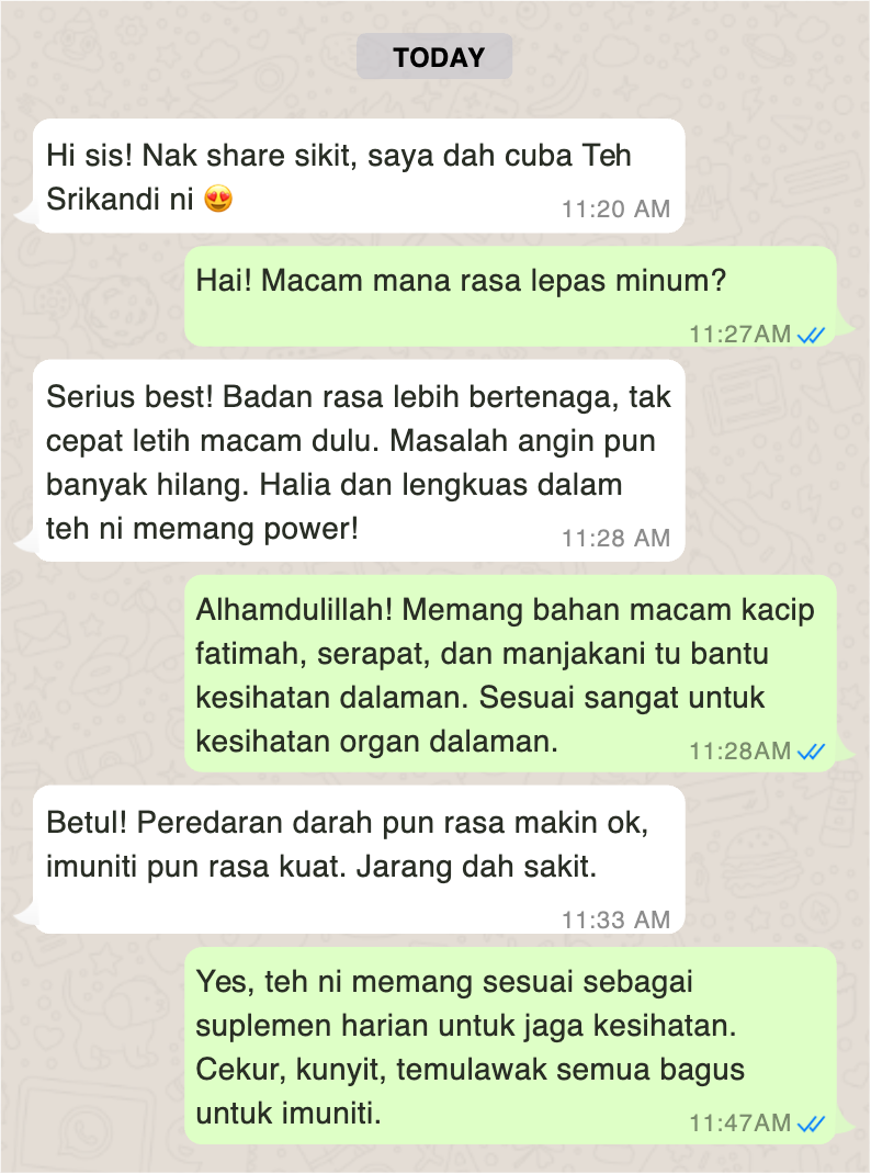 ✅ Formulasi khas lelaki (Perjaka) & wanita (Sri Kandi) – lebih fokus & berkesan.